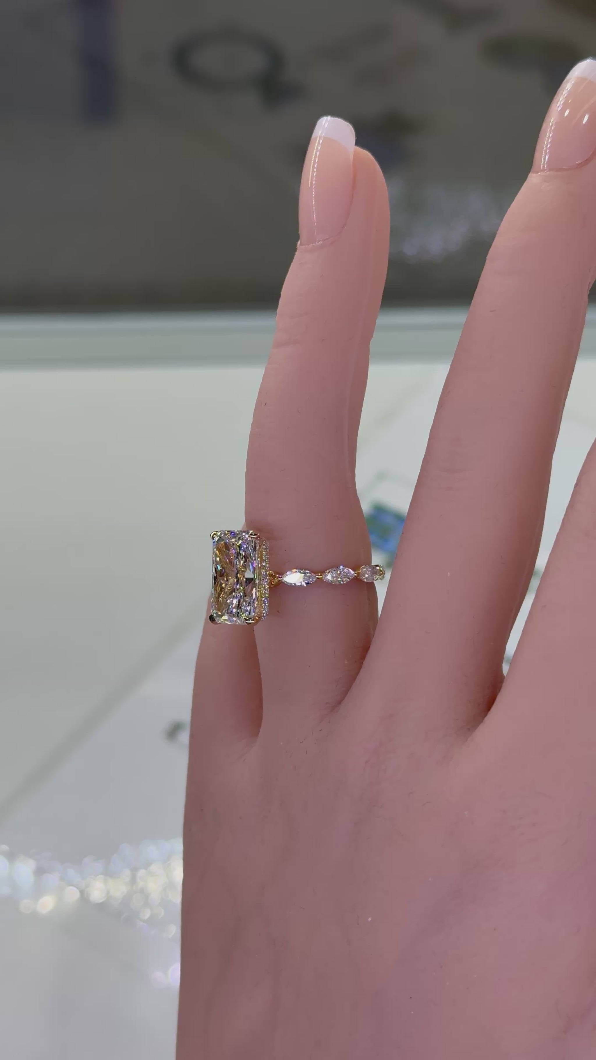 A timeless statement of elegance, The Natalia features a radiant-cut lab-grown diamond set in a striking marquise band. Designed to enhance brilliance, the hidden halo adds an extra touch of luminosity, creating a breathtaking sparkle from every angle. A blend of modern sophistication and vintage charm, this exquisite piece is a symbol of love and refined luxury.